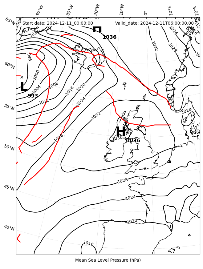 Mean sea level pressure and fronts