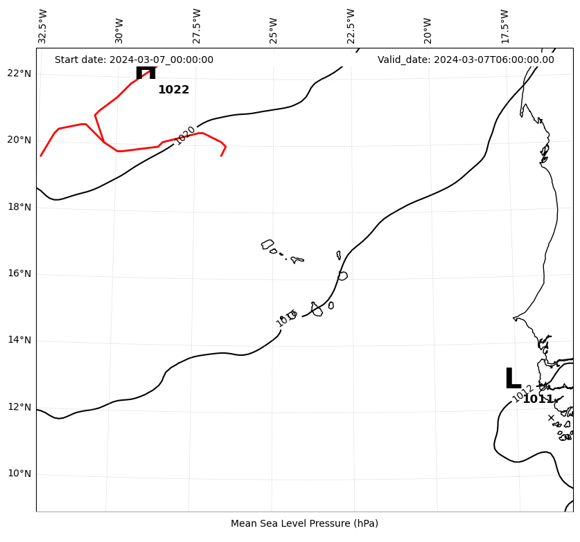 Mean sea level pressure and fronts