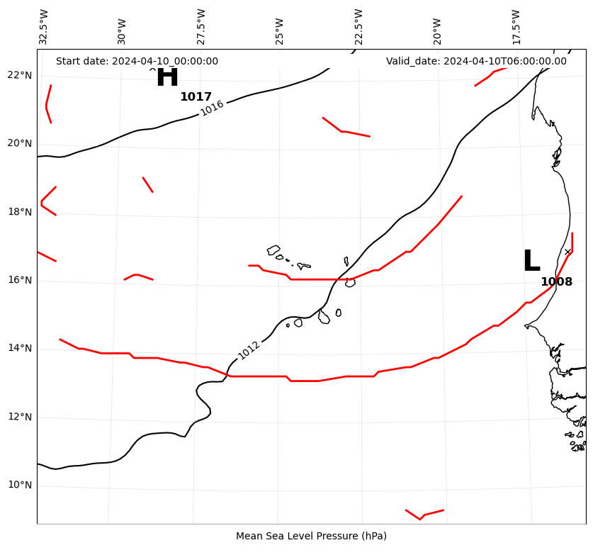Mean sea level pressure and fronts