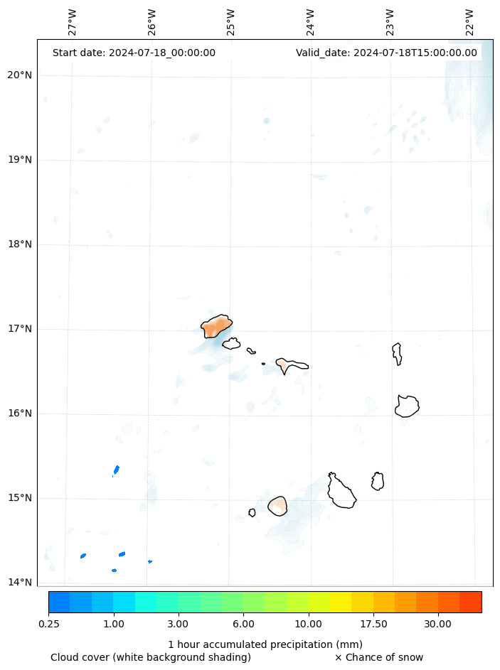 - Snow mixing ratio (g kg¯¹)