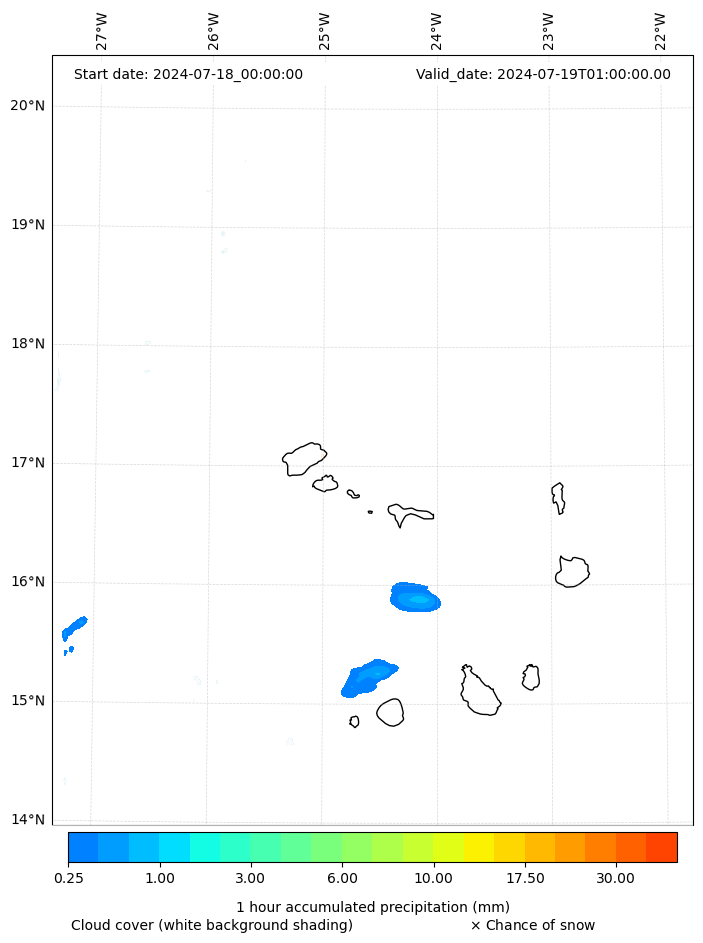 - Snow mixing ratio (g kg¯¹)