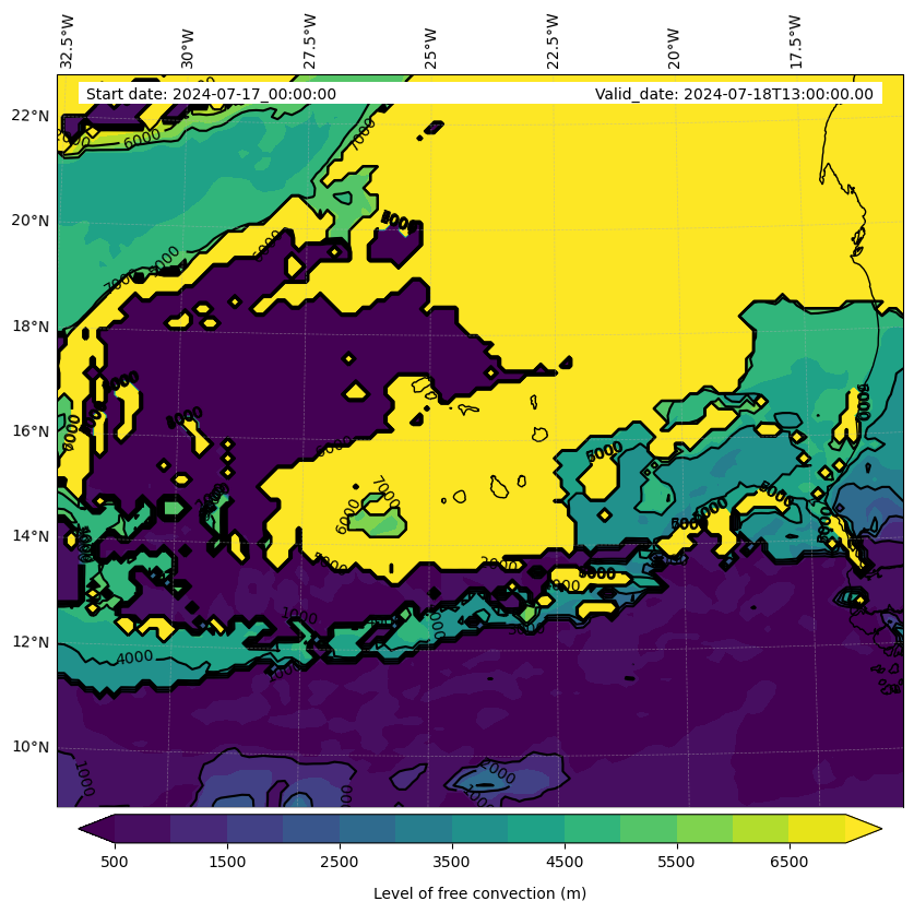 - Level of free convection (m)
