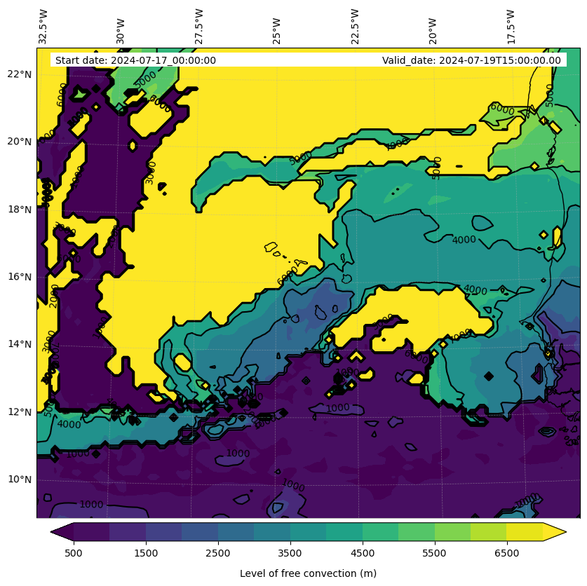 - Level of free convection (m)