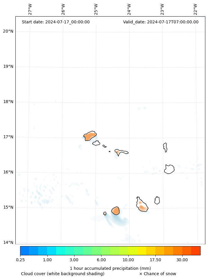 - Snow mixing ratio (g kg¯¹)