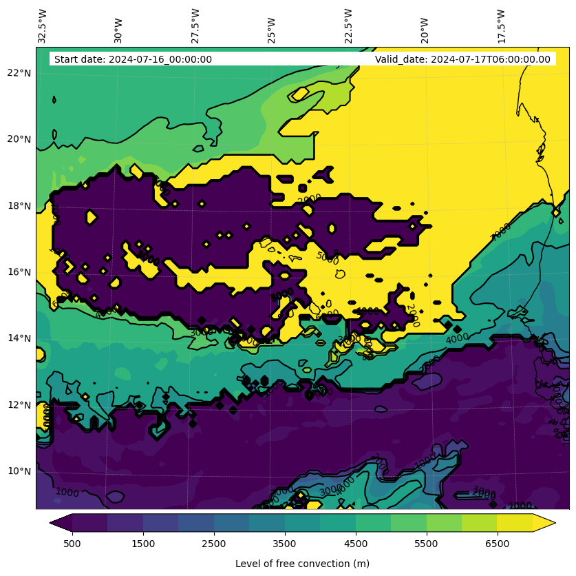 - Level of free convection (m)