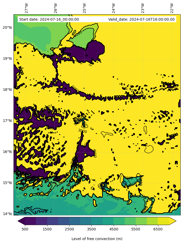 - Level of free convection (m)