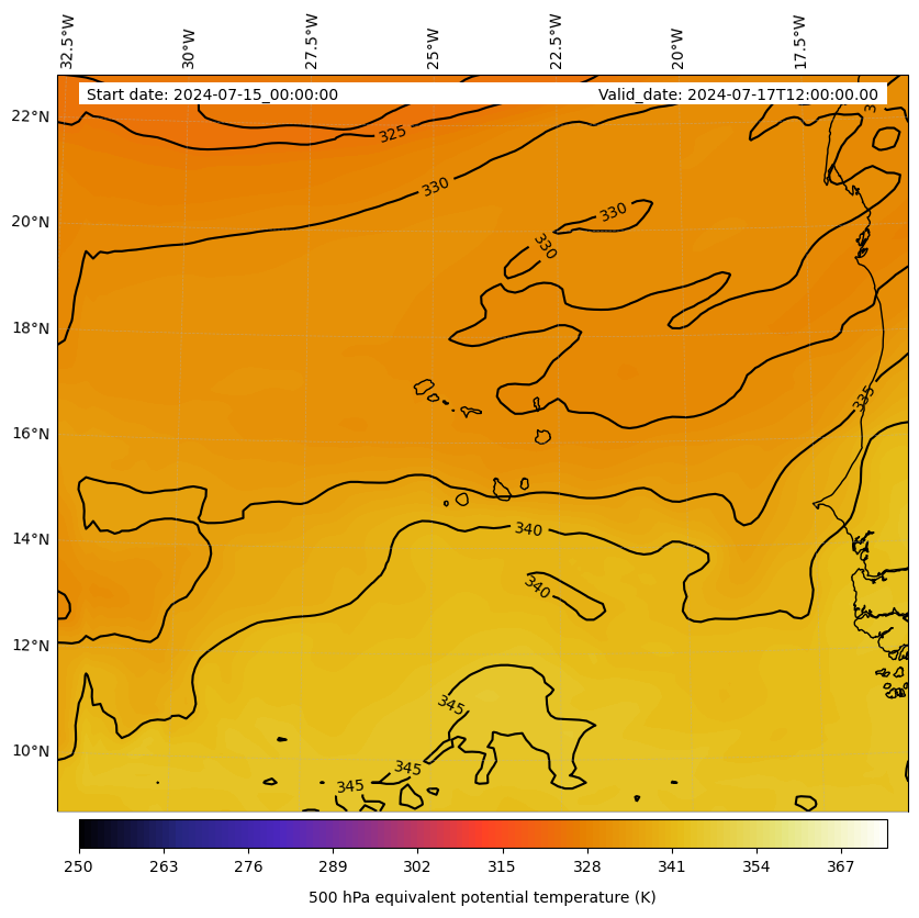 - Equivalent Potential Temperature (K)