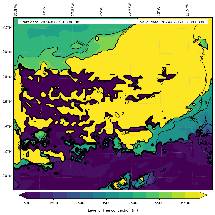 - Level of free convection (m)