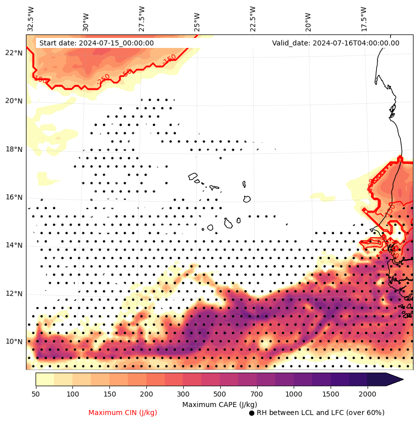 • Maximum CAPE (J/Kg)