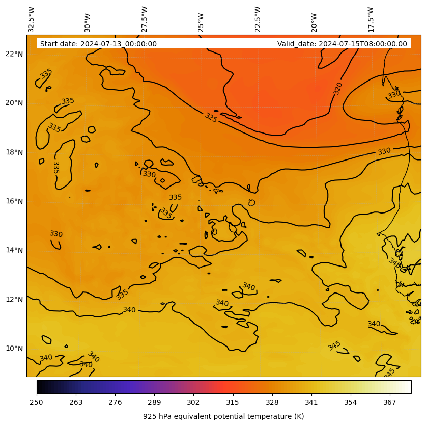 - Equivalent Potential Temperature (K)