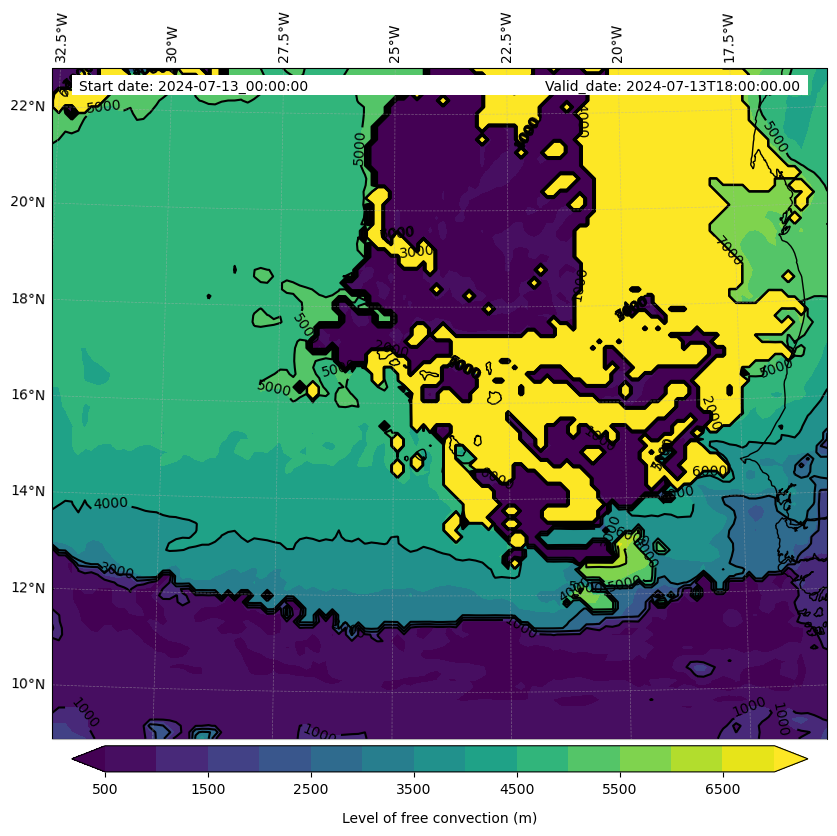 - Level of free convection (m)