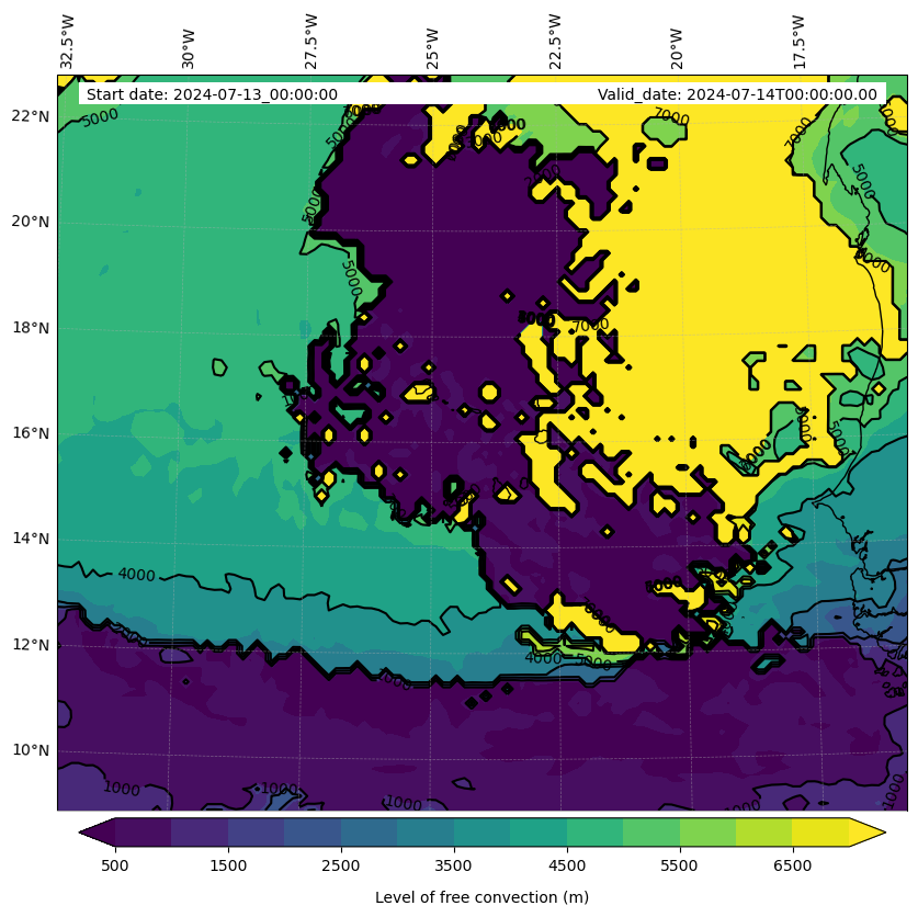 - Level of free convection (m)
