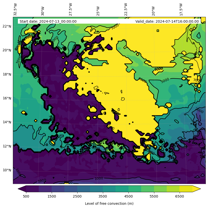 - Level of free convection (m)