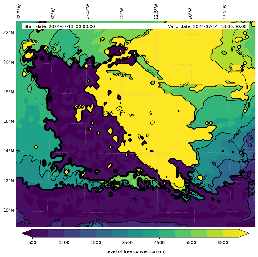 - Level of free convection (m)