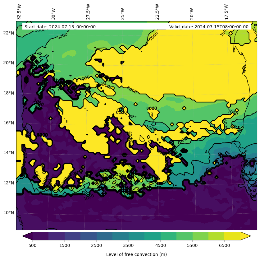 - Level of free convection (m)