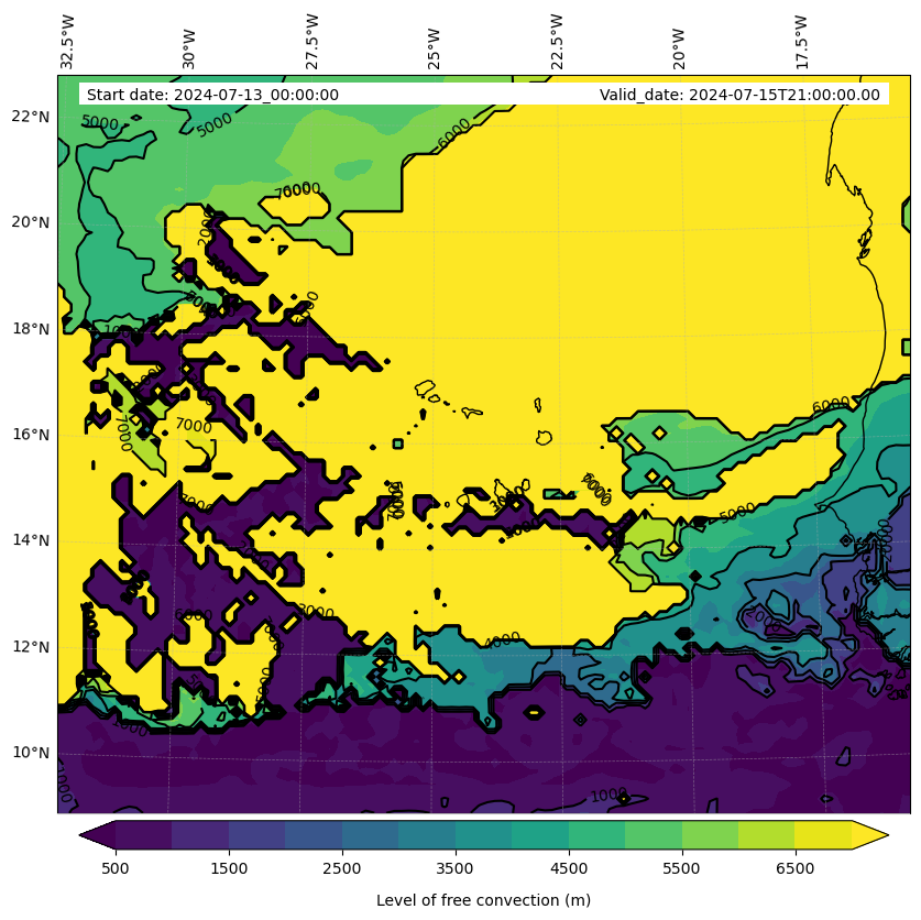 • Level of free convection (m)