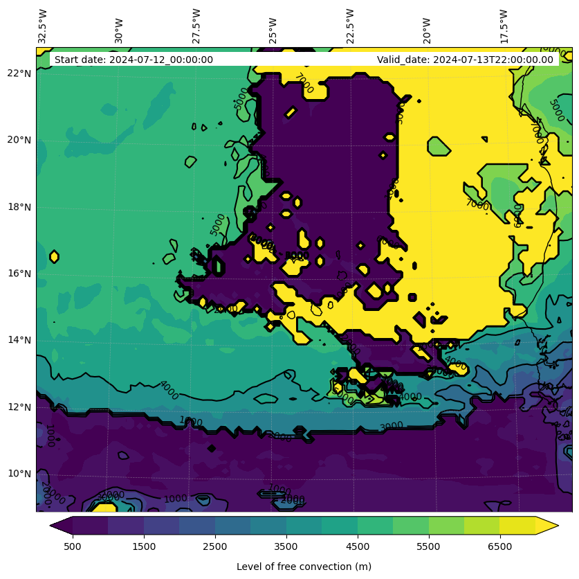 - Level of free convection (m)