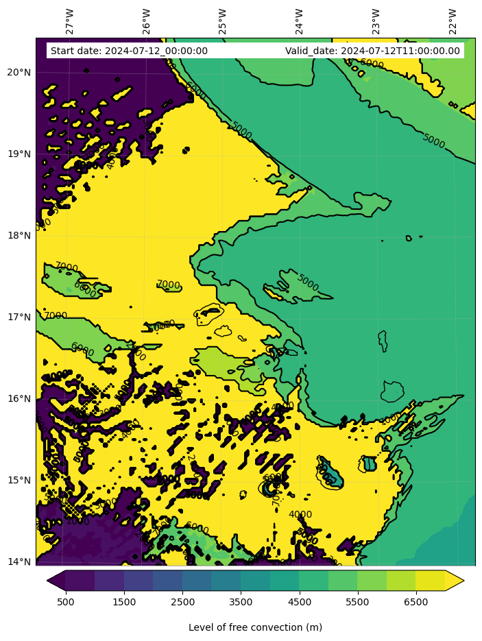 • Level of free convection (m)