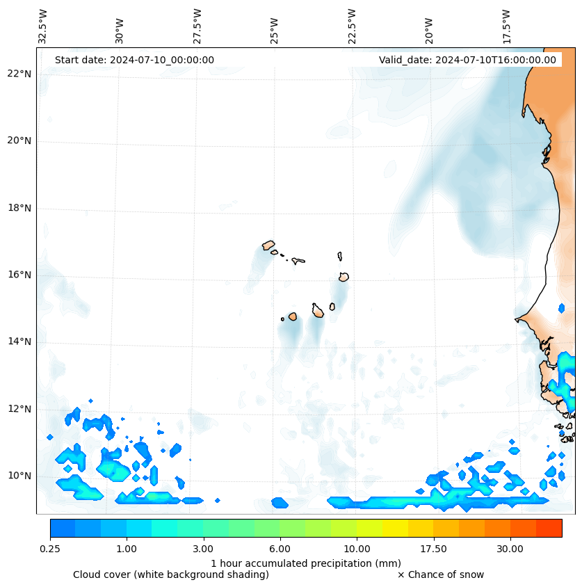 - Snow mixing ratio (g kg¯¹)