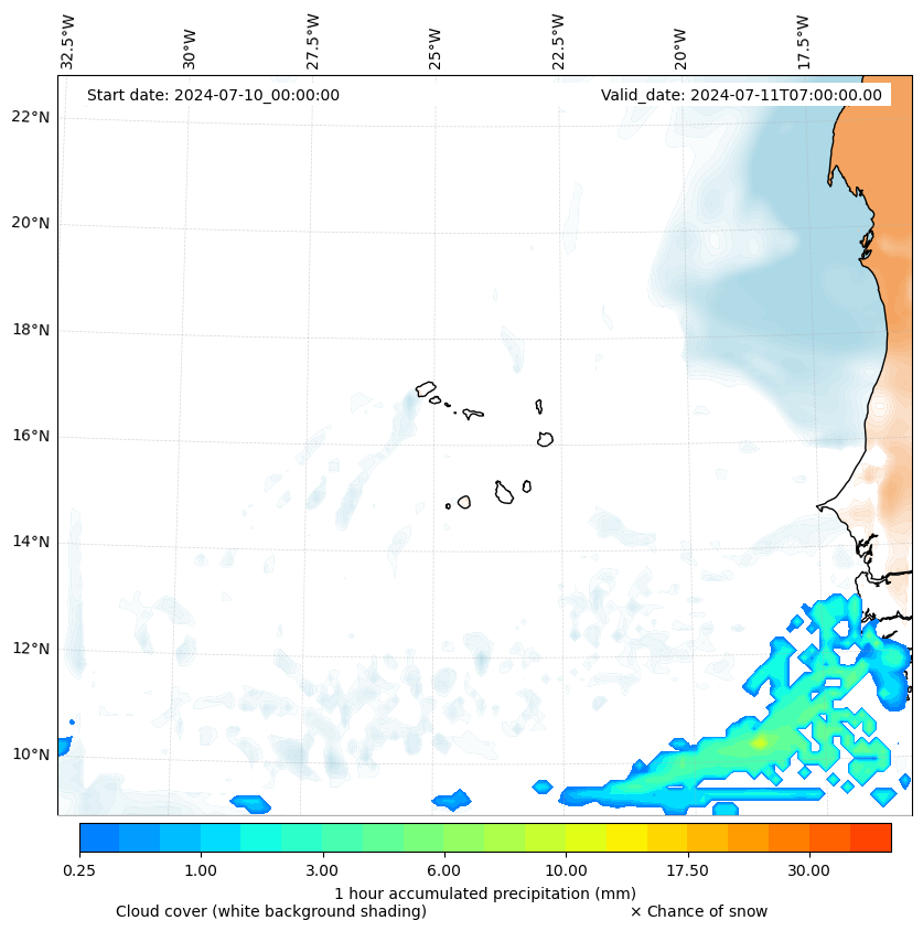 - Snow mixing ratio (g kg¯¹)