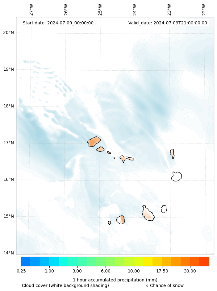 - Snow mixing ratio (g kg¯¹)