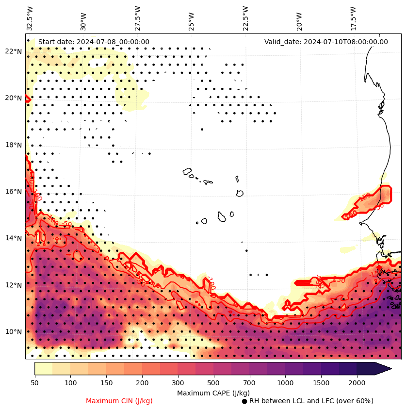 • Maximum CAPE (J/Kg)