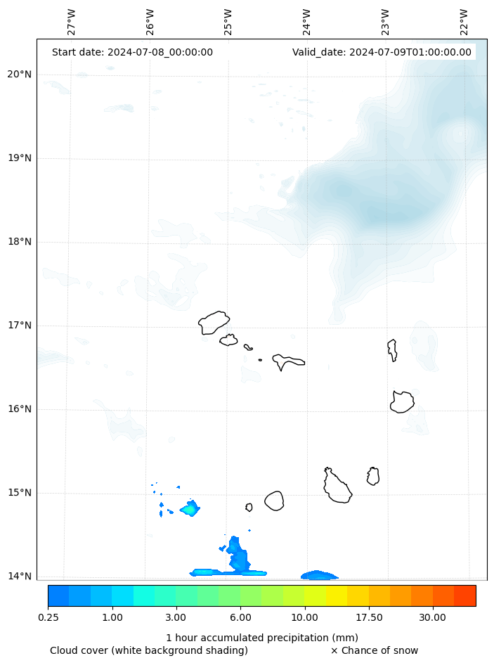 - Snow mixing ratio (g kg¯¹)