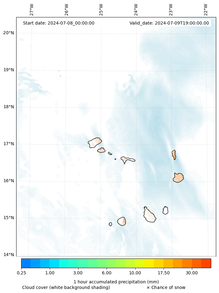 - Snow mixing ratio (g kg¯¹)