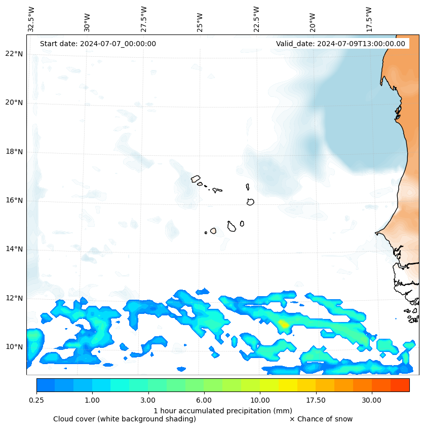 - Snow mixing ratio (g kg¯¹)
