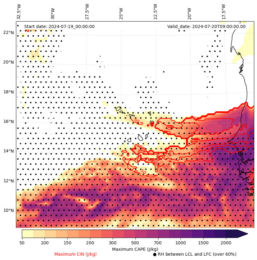 • Maximum CAPE (J/Kg)