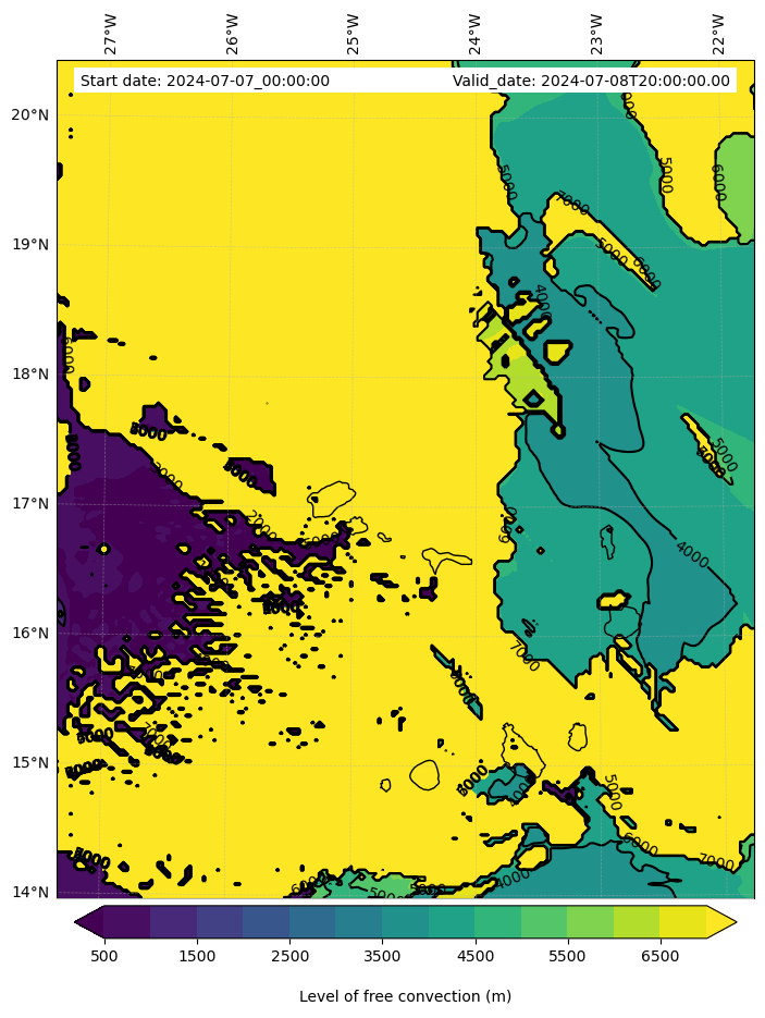 - Level of free convection (m)