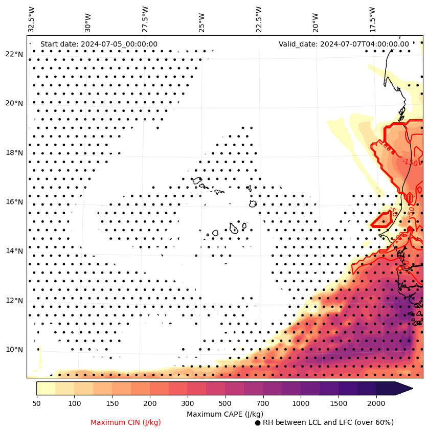 • Maximum CAPE (J/Kg)