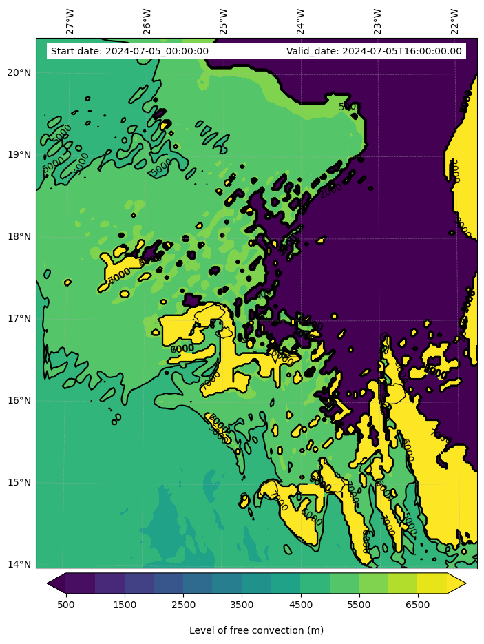 • Level of free convection (m)