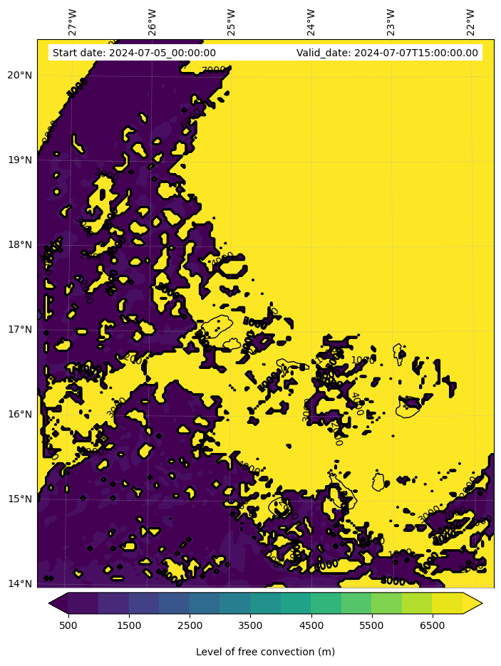 • Level of free convection (m)
