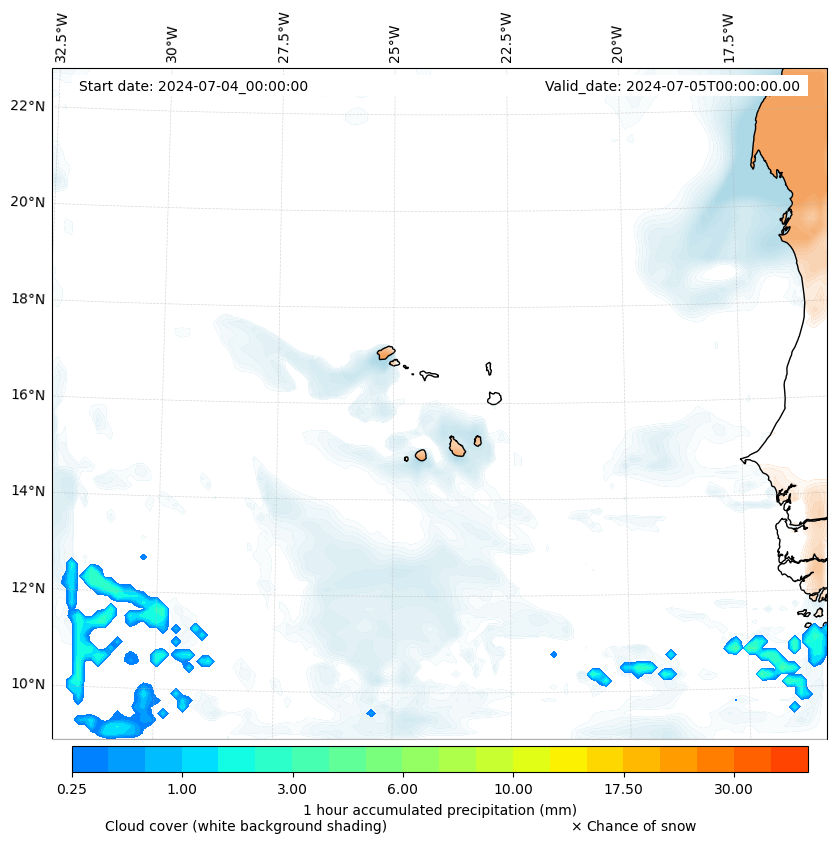 - Snow mixing ratio (g kg¯¹)