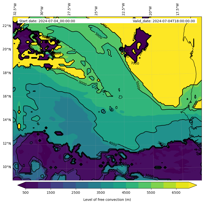 - Level of free convection (m)