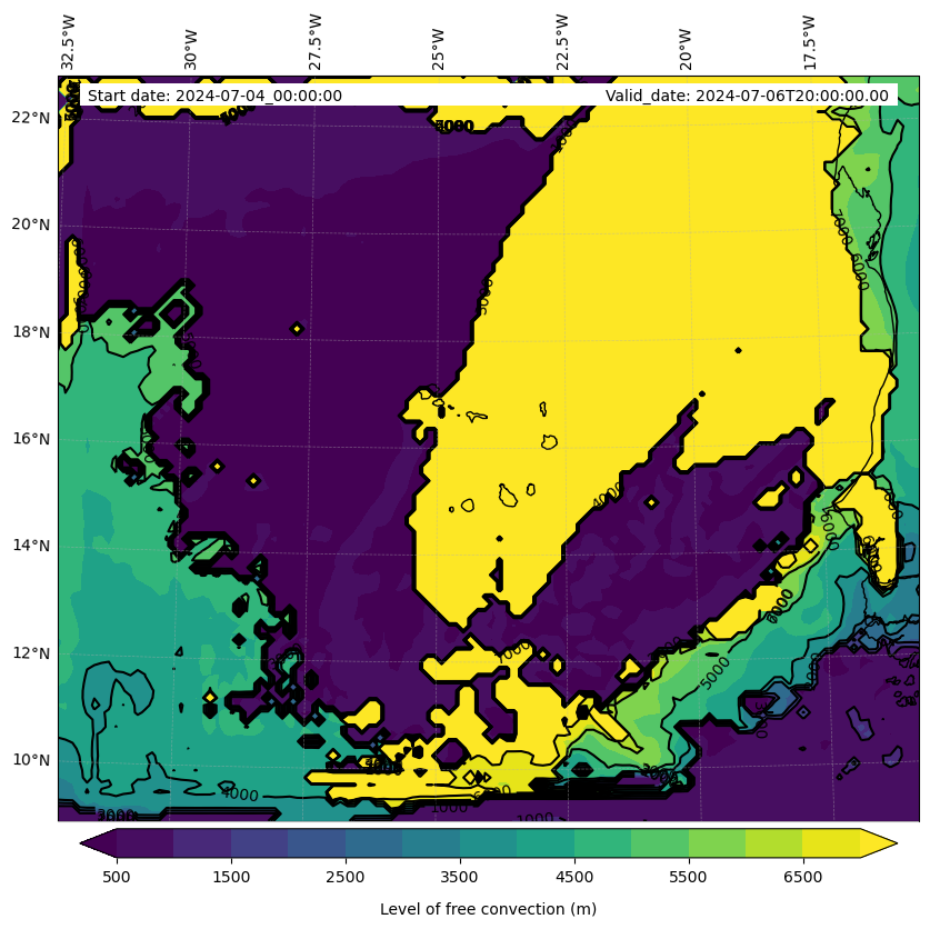 - Level of free convection (m)