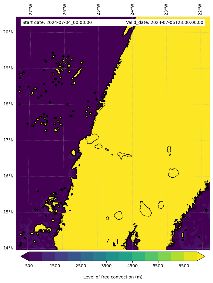 - Level of free convection (m)