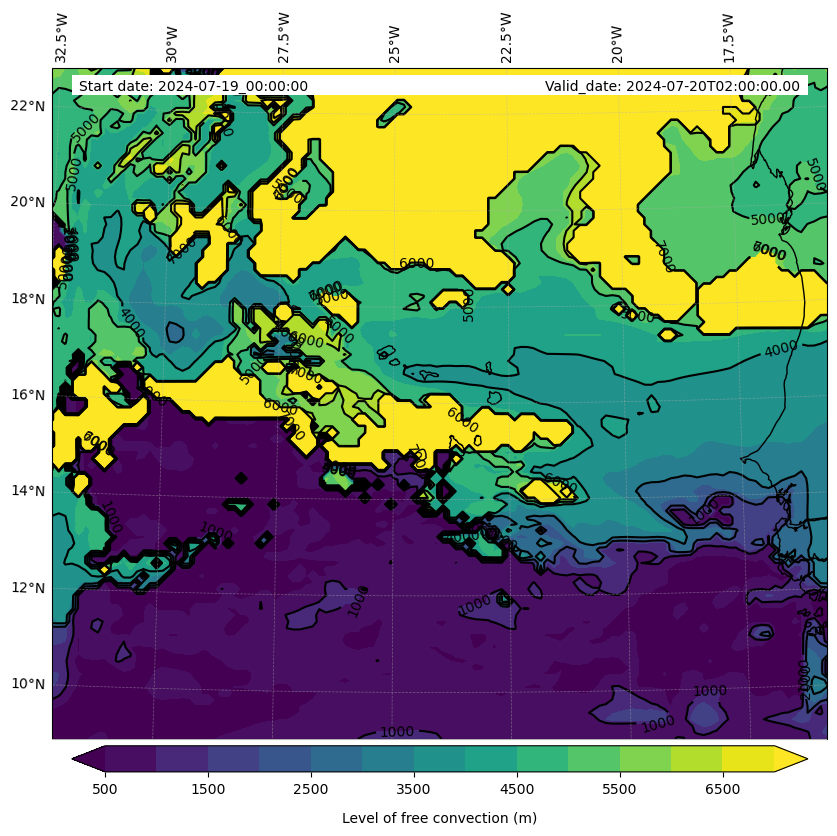 - Level of free convection (m)