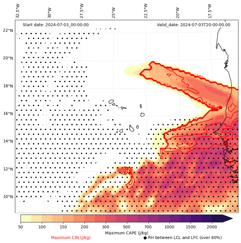 • Maximum CAPE (J/Kg)