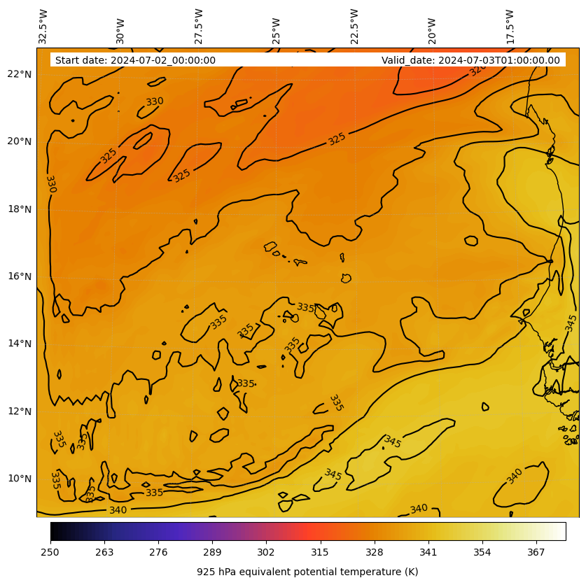 - Equivalent Potential Temperature (K)