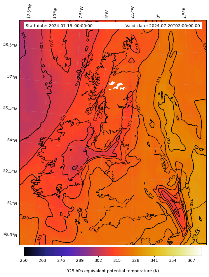 - Equivalent Potential Temperature (K)