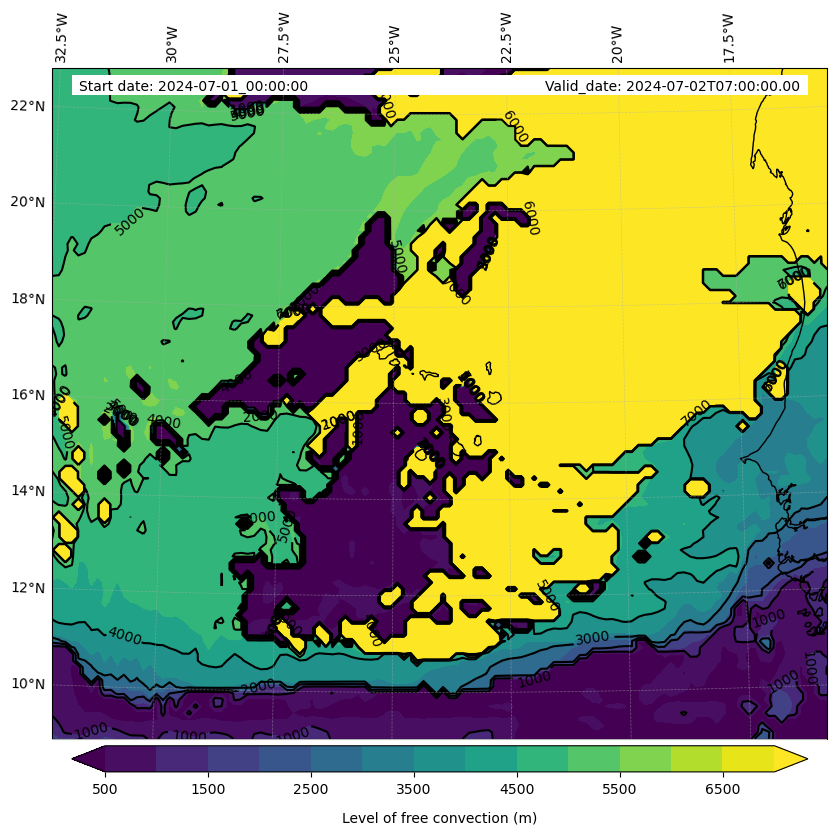 • Level of free convection (m)