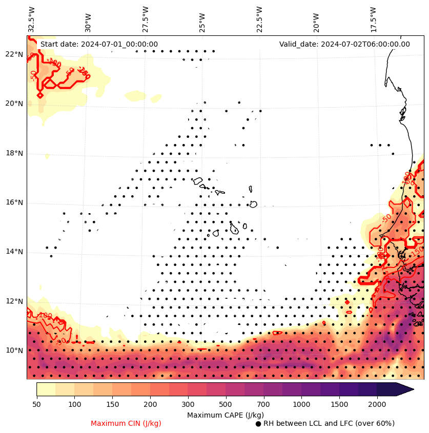 • Maximum CAPE (J/Kg)