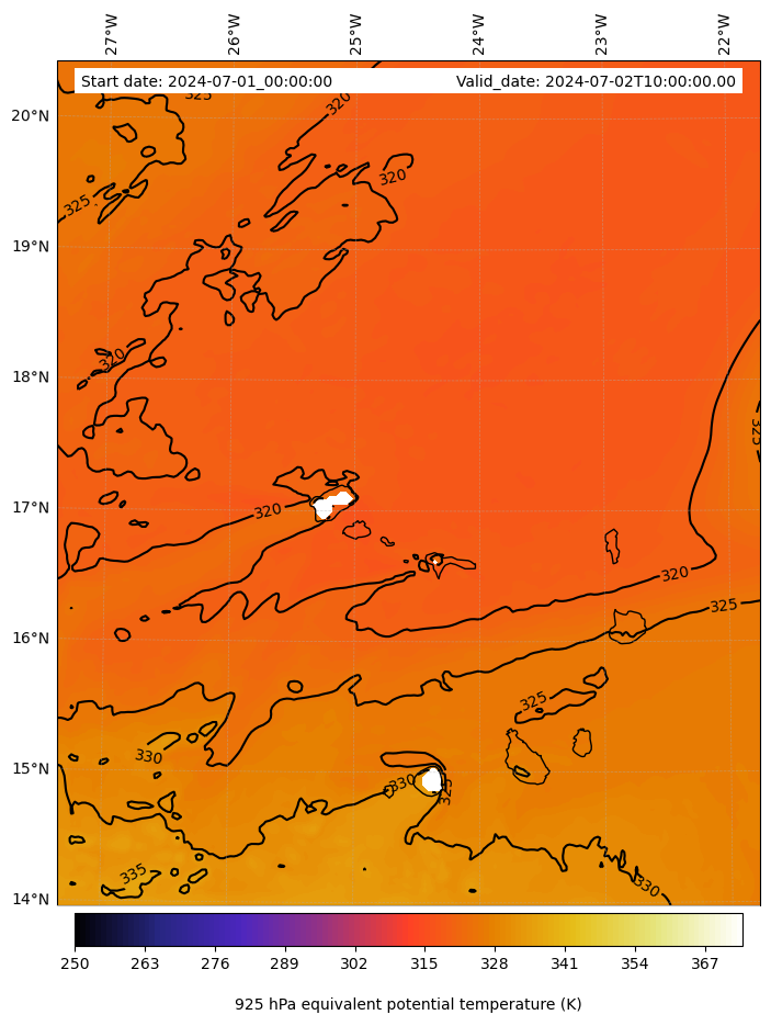 - Equivalent Potential Temperature (K)