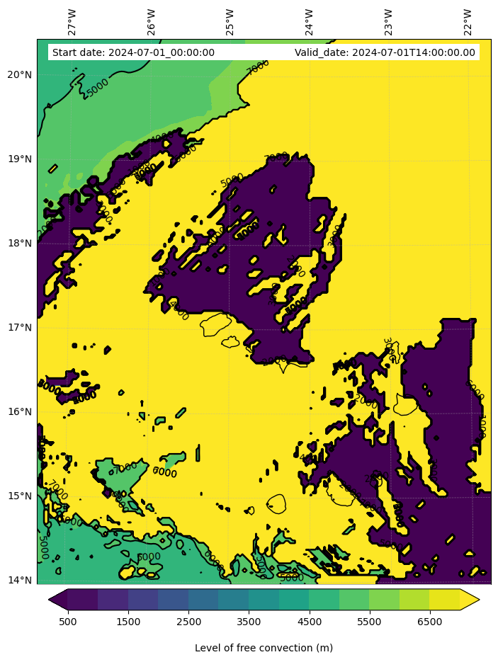 • Level of free convection (m)