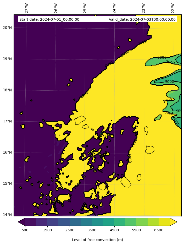 - Level of free convection (m)