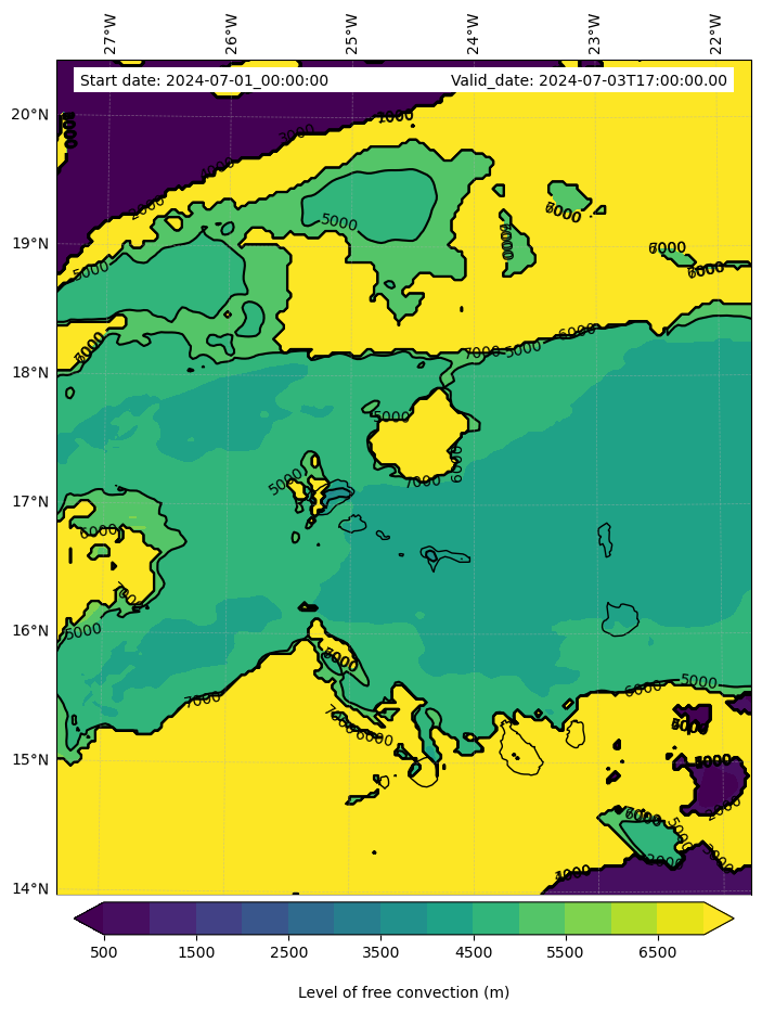 • Level of free convection (m)