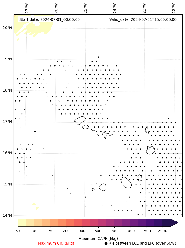 • Maximum CAPE (J/Kg)