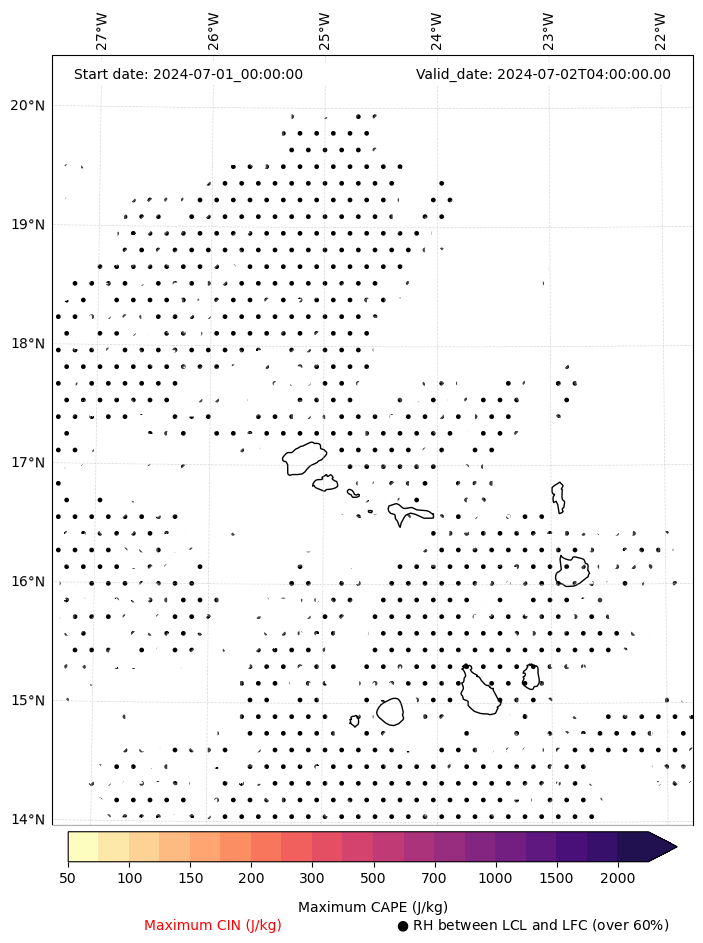 • Maximum CAPE (J/Kg)